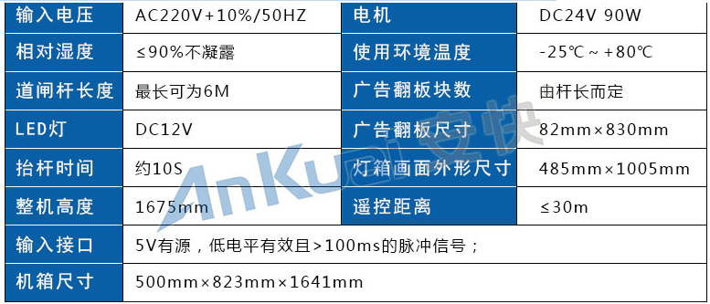 1、工作溫度:-25℃~+75℃2、相對濕度:AC 220V±10% 50Hz3、電機功率:90W4、遙控距離:≤40m